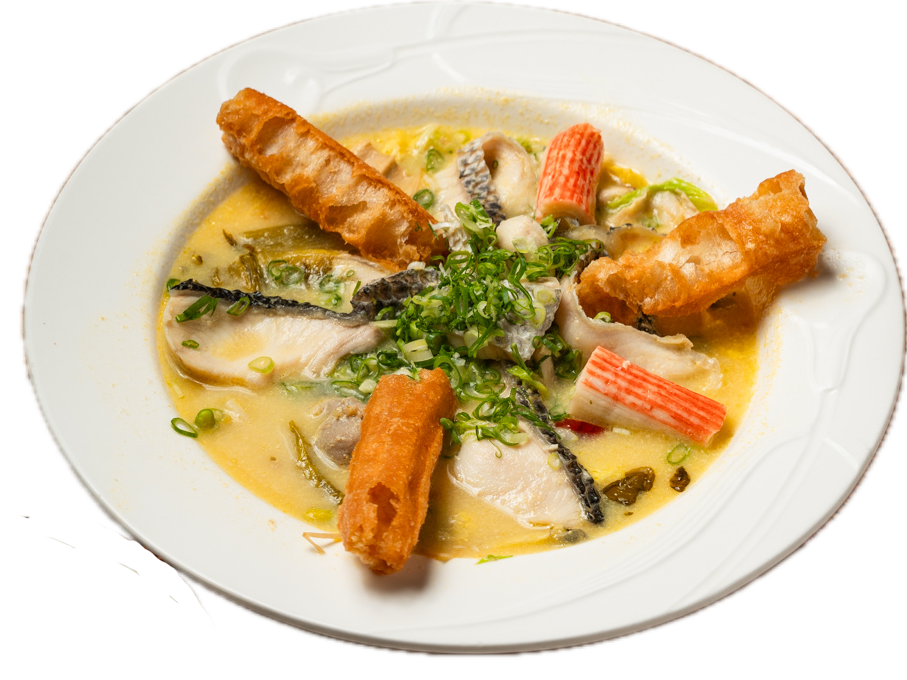 黃金湯底酸菜魚,採用秘罈天然釀製酸菜料理,酸/辣/麻/香 味味入魂